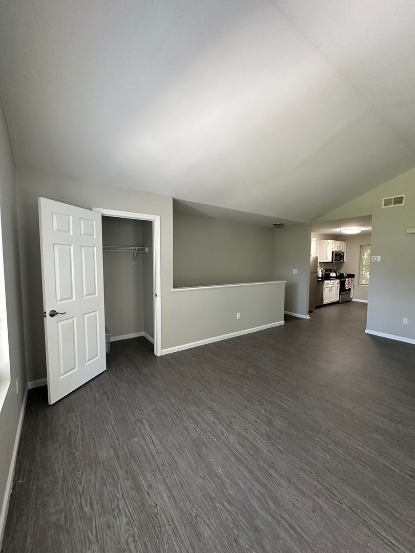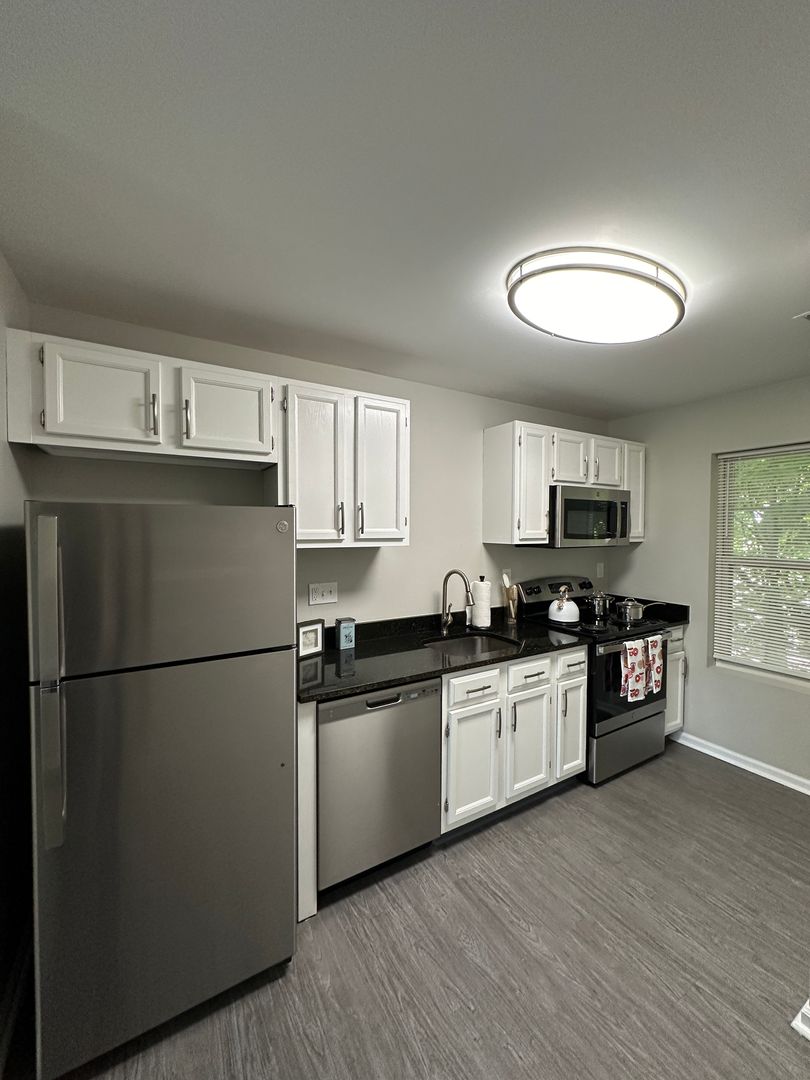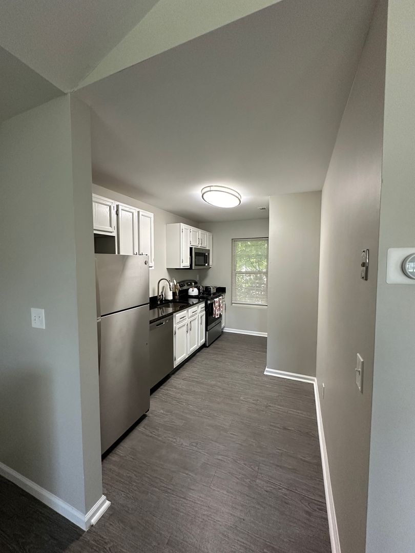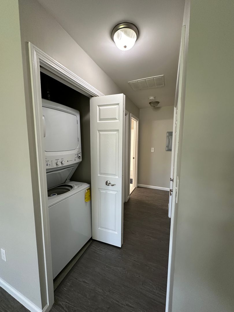 Second floor (walk up) 1-bedroom apartment with stainless steel appliances and in unit washer and dryer.